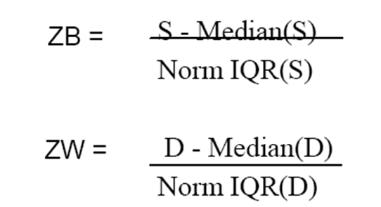 Giả sử các cặp kết quả từ 2 mẫu được gọi là A, B. Trung vị và độ rộng phần tư chuẩn hoá của tất cả các kết quả mãu A được xãc định bằng trung vị A và norm IQR (A), lần lượt (giống như vậy với B)